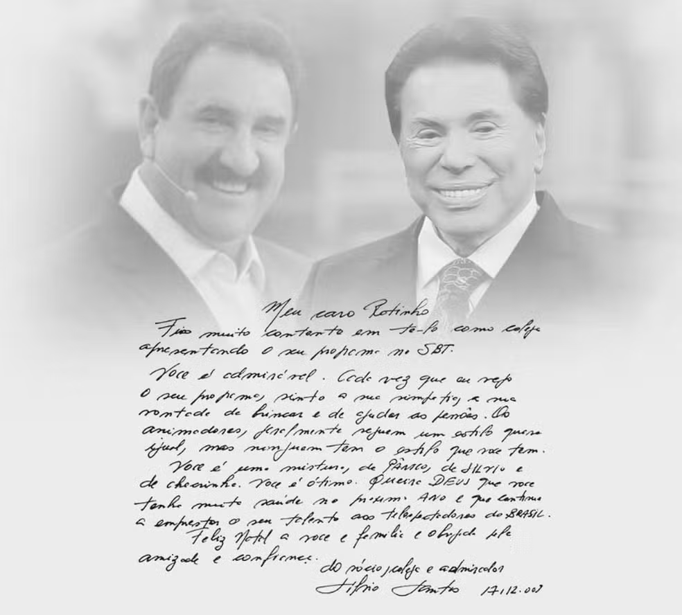 Ratinho chamou o texto de “a carta mais importante da minha vida”, revelando uma missiva pessoal enviada por Silvio Santos durante as festas de fim de ano, onde o veterano da TV elogiava calorosamente o estilo único e carismático de Ratinho no SBT.